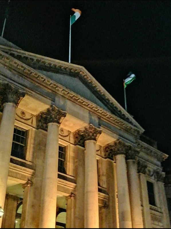 A margine, bello vedere la bandiera palestinese sul municipio di Dublino.