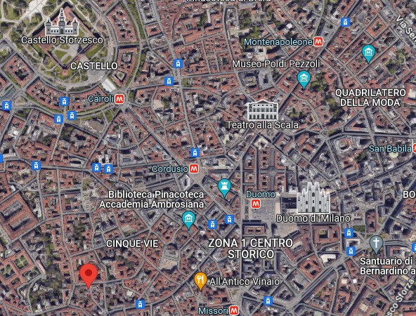 Ora....vorrei dire....io non sono di Milano, ma siamo in pieno centro ed a due passi dal Duomo, di fronte c'è un Bar-Tavola calda per la pausa pranzo ed un Conad per fare la spesa prima di tornare a casa.