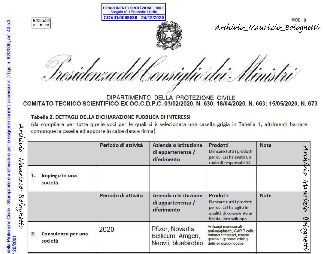 Dichiarazione pubblica d'interessi di Franco Locatelli.
