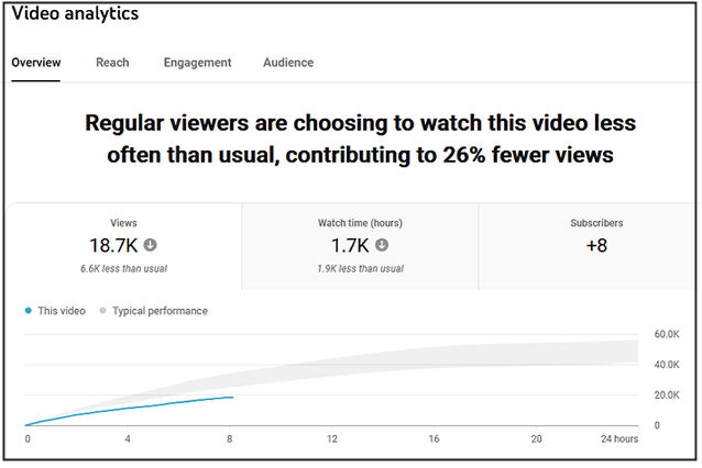 A 8 ore dalla pubblicazione siamo decisamente sotto la media delle visualizzazioni.