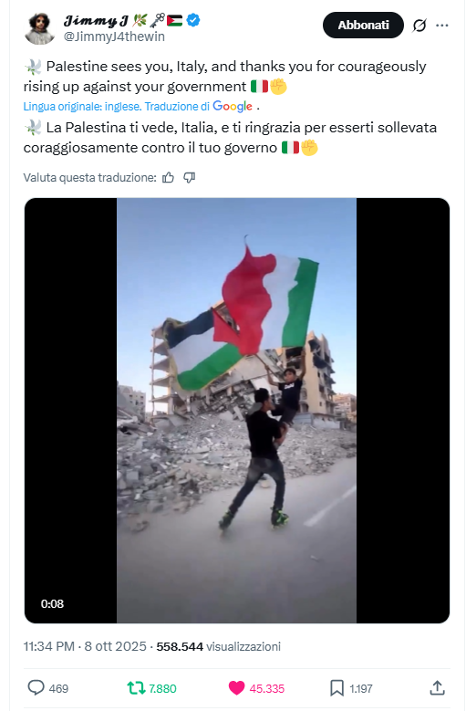 Praticamente oggi ho capito che in Italia i palestinesi contano più degli italiani