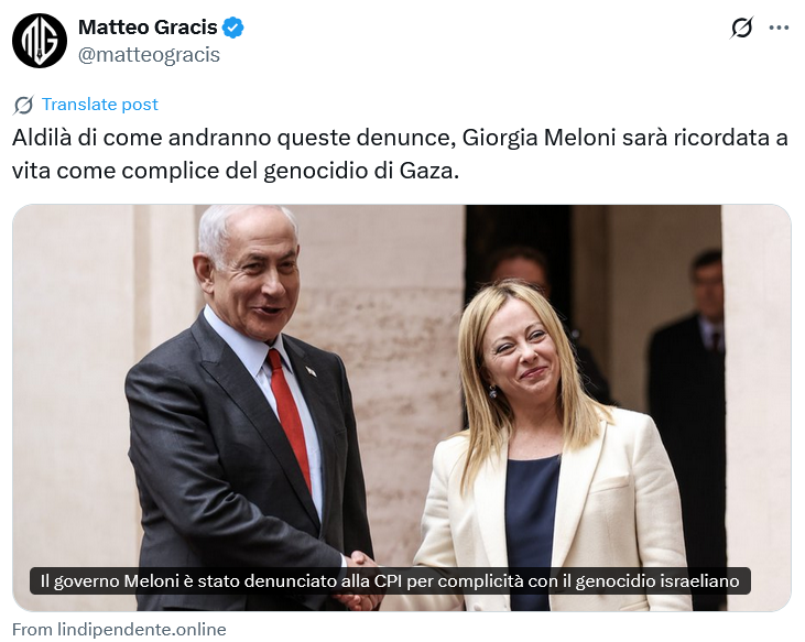 Il governo italiano per me che sia di sinistra o di destra non c'entra nulla con il genocidio.