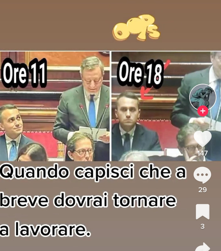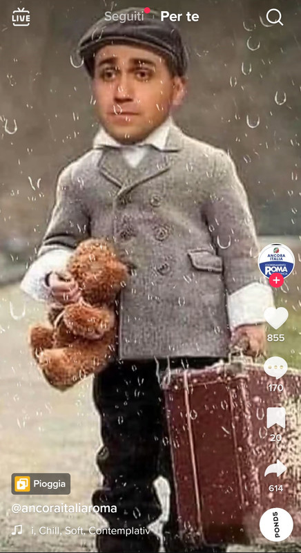 Comunque a me è piaciuta tantissimo la magia che ha illuso di Maio, draghi lo ha convinto a schierarsi con lui mentre se ne andava, conte è partito al galoppo quando lo ha visto ormai a piedi, ora giggino è li a sostenere il vuoto, se non ha un accordo sottobanco per inserirlo in qualche bar dentro uno stadio, che non sia Napoli è chiaro, è fottuto, perché non lo voterà manco la moglie