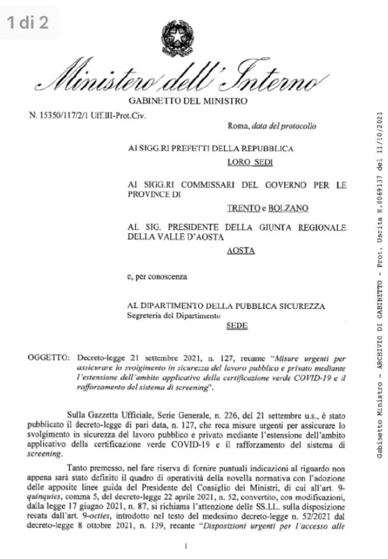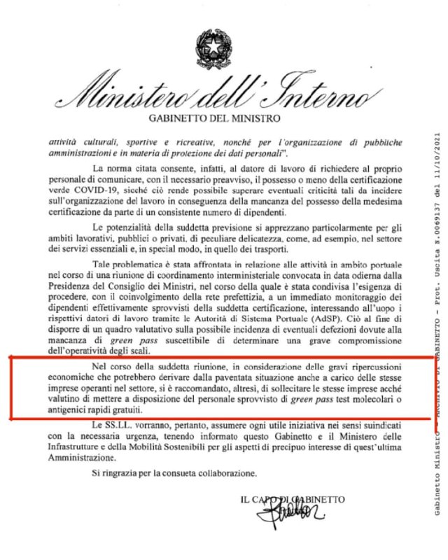 PS l'azienda intende controllare il green pass a tutti, due volte al giorno. All'ingresso e dopo la pausa.