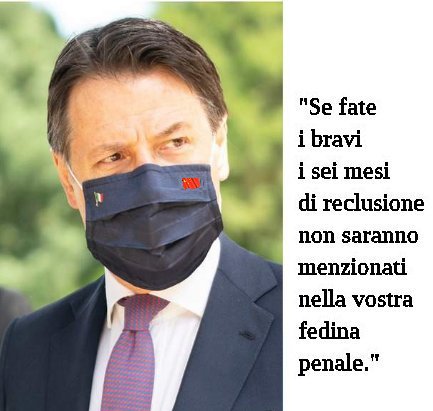 Forse non è chiaro che chiunque salga al governo ha decisamente le mani legate per svariati motivi. C'è poi chi viene veramente piazzato da gruppi di potere e chi invece magari si trova in una situazione più grande di lui, che però cerca di gestire il meglio possibile. O forse devo davvero credere che uno dica una cosa per farne un'altra e voglia fare il dittatore mascherato provando addirittura gusto a farlo, così come viene descritto Conte? Boh, chissà se mi sbaglio o chissà che non stia leggendo una montagna di fesserie. Starò a vedere ma a me sembra davvero che ci si esprima in certi termini contro questo o quello per poi favorirne uno ancora più schifoso. E di scelta mi pare ce ne sia poca, ahinoi. Non mi rassegno ma cercherei di non sparare a caso certe accuse.