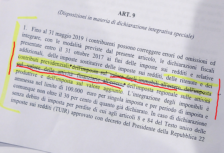 ripropongono il testo con gl immobili all'estero..