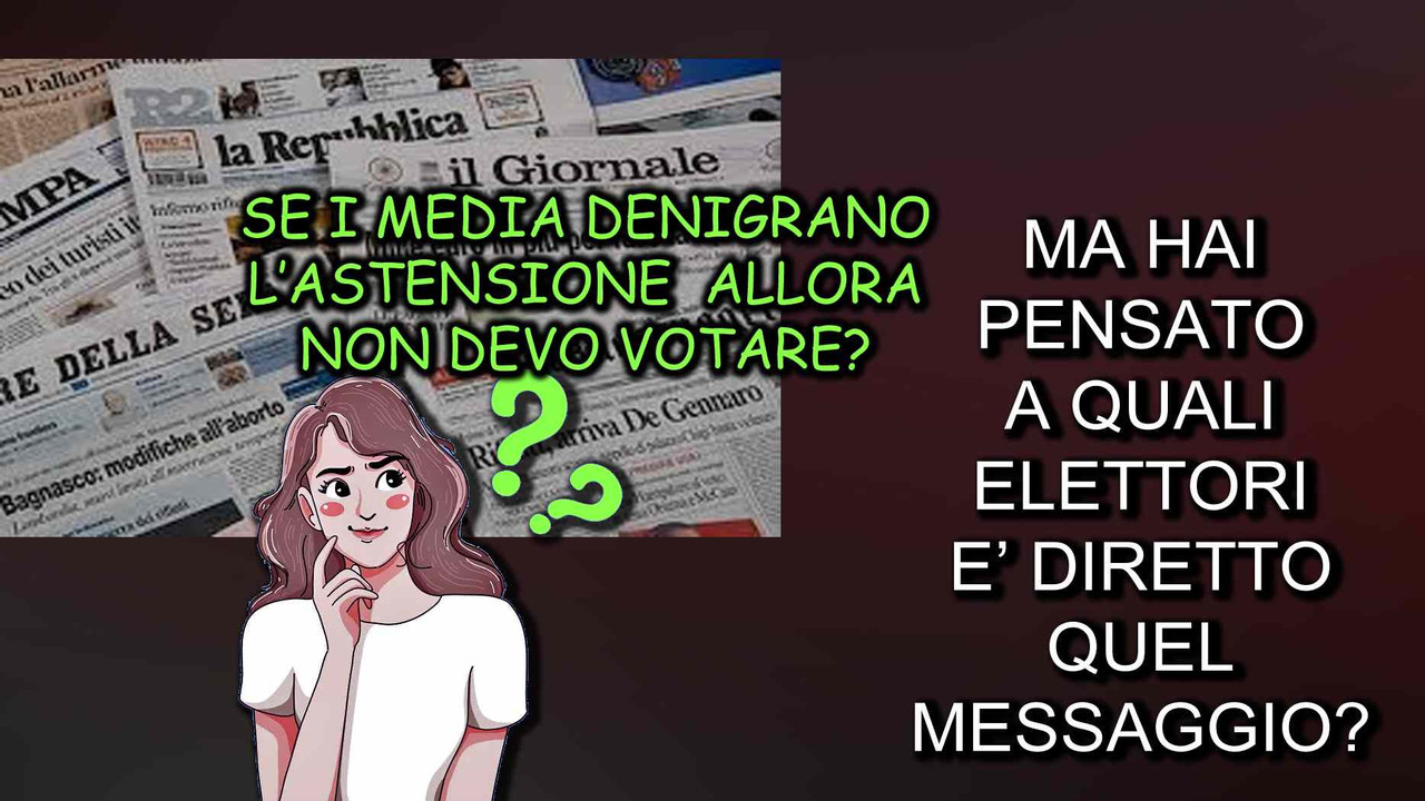 Nell'attuale ordinamento ci sono altri casi come questo, per esempio i tre giorni che ogni madre ha a disposizione per rivendicare la proprietà del figlio solo ed esclusivamente se partorito in modo naturale.. in questo caso, l'informazione viene sistematicamente insabbiata occultata e pace.. nel caso dell'astensionismo invece viene fatto esercitare .. fino a quando però verrà tollerato? è questa la domanda..