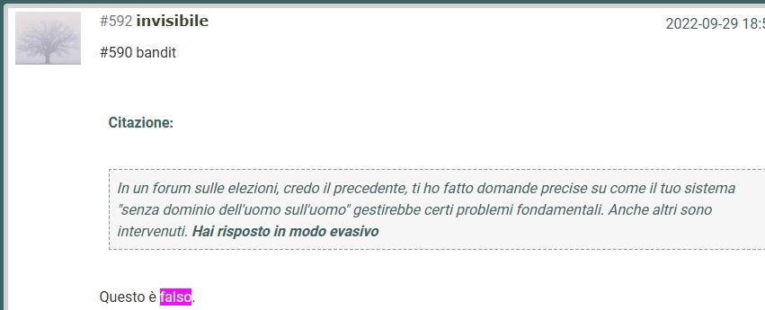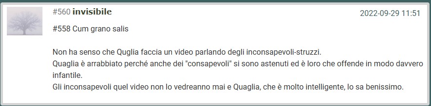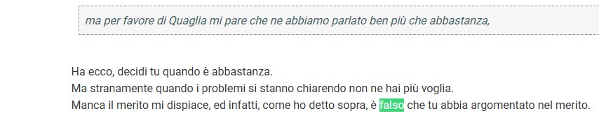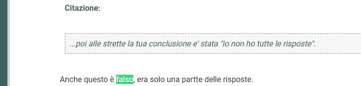 Ed allora ricorri a truchetti dialettici, i classici proprio, distorsione del significcato, derisione infantile, dengrazione gratuita per cercare di "annacquare" quei concetti che ti sciolgono le budella.