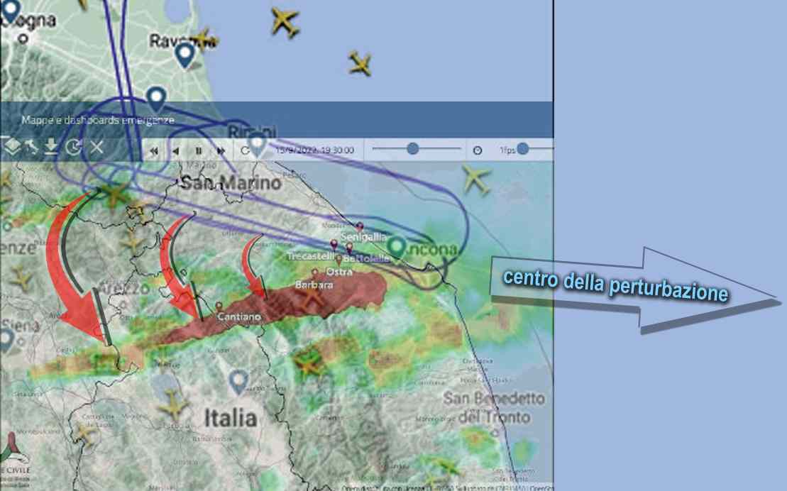 Sarebbe molto interessante sapere che vento tirava quando l'aereo era in sorvolo, perchè se il vento tirava da nord con centro della perturbazione in direzione est rispetto ad Ancona gli eventi non sarebbero da considerarsi solo prossimali ma addirittura sovrapponibili.