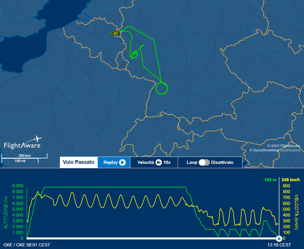 Cliccando “playback” sulla data 2022-09-13 compare il tracciato di volo di quel giorno.