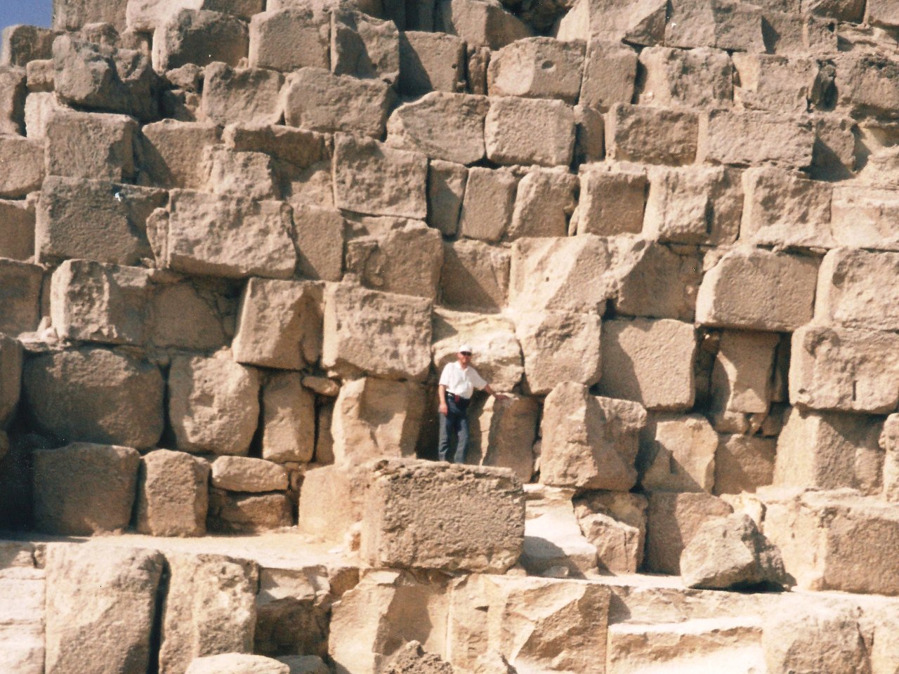 Questo sono io sulla piramide di Cheope, vi invito ad osservare le pietre che mi circondano: