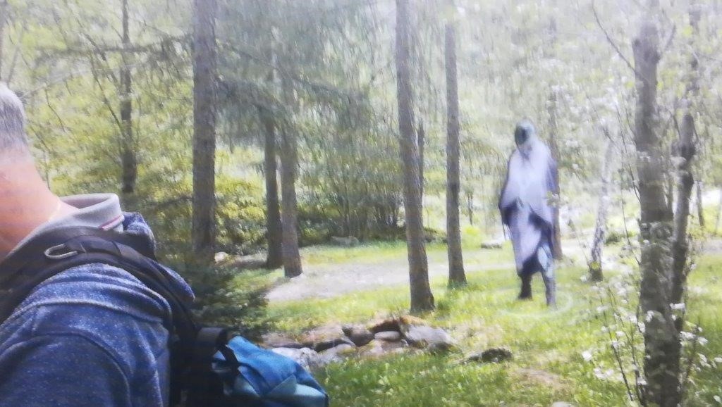 Da quell’oscurità videro emergere una strana creatura. Era vestito tutto di nero, gambali e vestiti, e portava uno strano cappello, anch’esso nero. Aveva la pelle pallida, i capelli gialli e gli occhi blu. Sotto il naso gli crescevano dei peli che scendevano sopra le labbra; anche il mento era coperto di peli; insomma, aveva peli dappertutto. Quando parlava, il suono non assomigliava a quello di un linguaggio umano. Nessuno era in grado di comprenderlo.