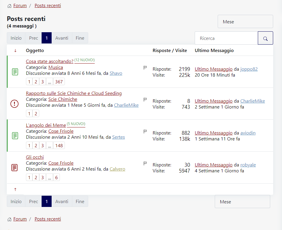 O meglio, ci sono solo i link ai messaggi recenti del Forum, ma non al Forum Home