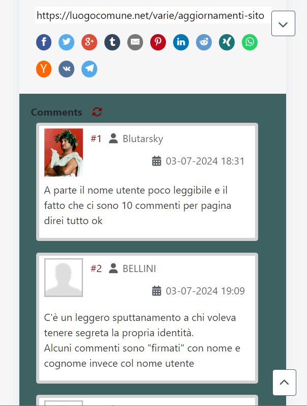 Io aumenterei di qualche punto la cornice del box di ogni commento perché si fa un po' di fatica a capire dove finisce un commento e inizia l'altro.